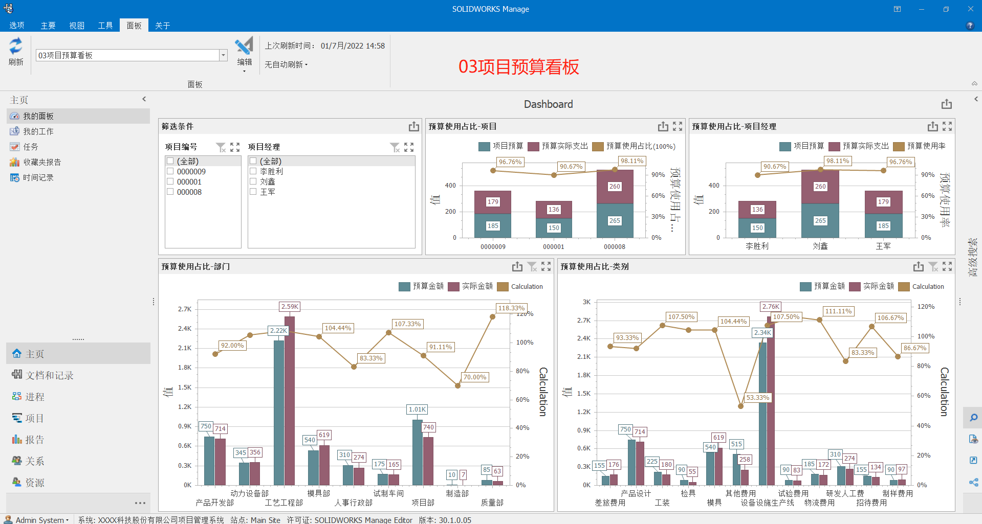 SOLIDWORKS Manage 是基于SOLIDWORKS PDM Professional的高级数据管理系统,它包含了项目管理,流程管理和 Item/BOM 管理及交互式的看板和报表管理等