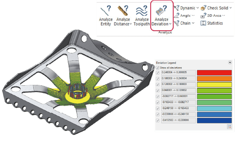 加工分析:对加工过程中的刀具负载、切削力、切削速度等参数进行分析。通过这些分析,用户可以优化加工参数,提高加工效率和加工质量。例如,根据切削力分析结果,可以调整刀具的进给速度和切削深度,以避免刀具过载损坏和零件加工变形。