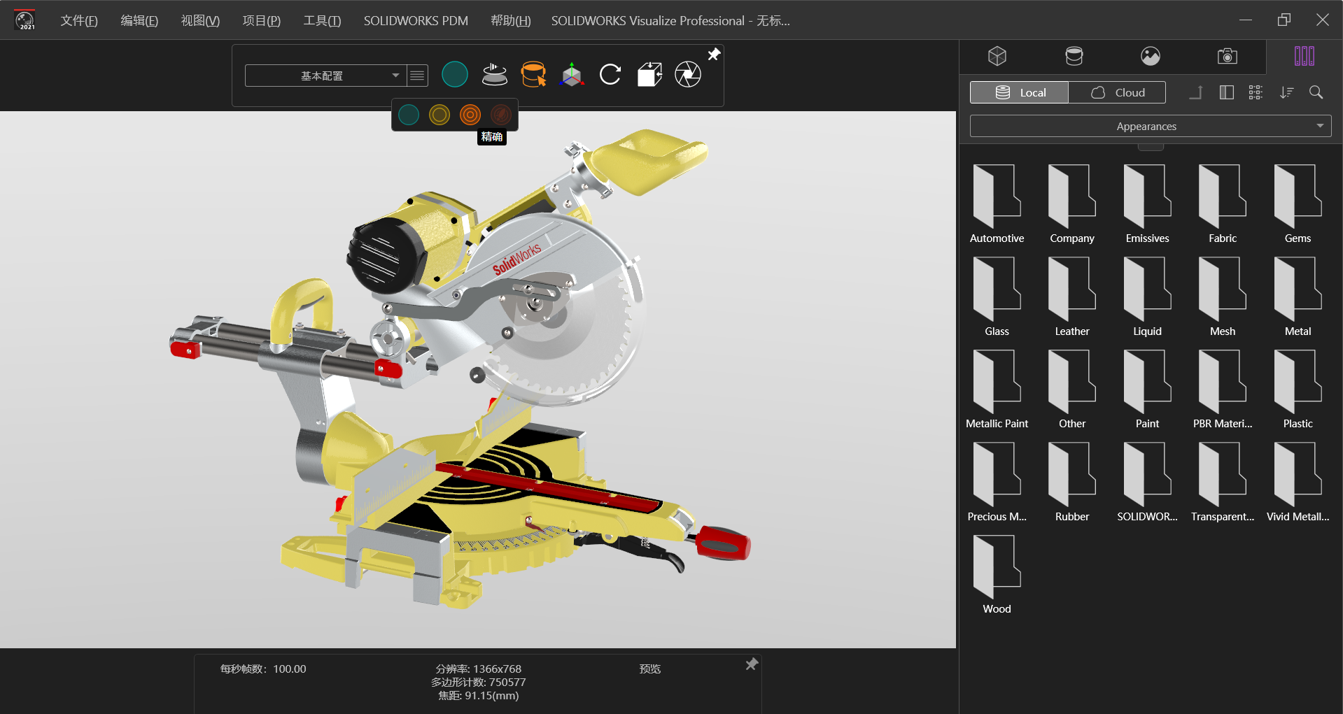 SOLIDWORKS Visualize 提供了物理基础渲染引擎(PBR)